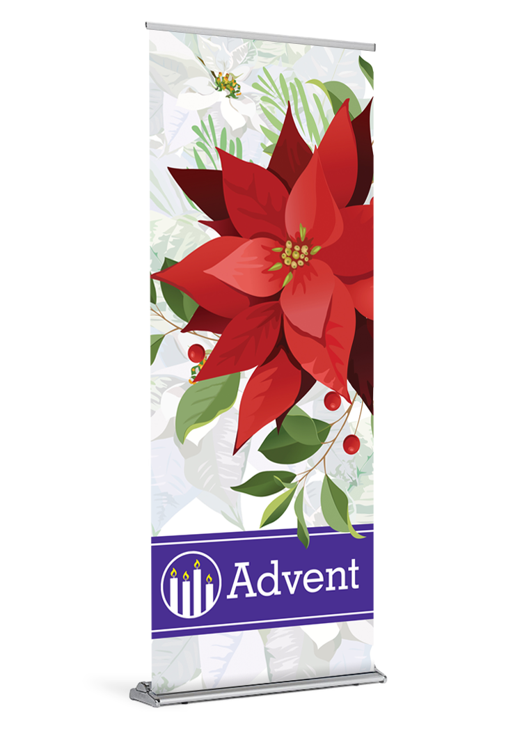If you ordered a banner with your stand the banner will come installed and ready be displayed. All you need to do is insert the pole and pull the banner up. If your parish already owns a stand, your banner will arrive with a bottom rail that is quick and easy to slide into your stand.