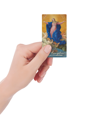 Celebrate the Assumption of Mary with this beautiful prayer card.