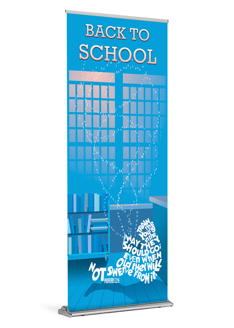 This Back to School banner is approximately 84″ tall. It is printed on durable, high quality polypropylene media with water resistant inks.