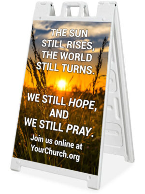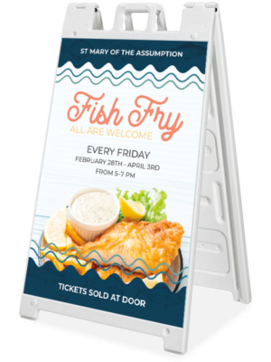 These Sidewalk A-Frame signs are made of high-grade, molded plastic and ready to place to announce your latest event. They can be weighted with sand to ensure they stay put, but are still easy to more with the built-in handle. Each A-Frame comes with 2 identical 24″ x 36″ 4mm coroplast prints that easily slide into the frame. This feature makes it easy to reorder and change out the message as needed.