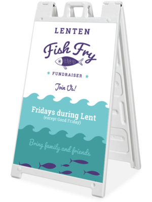 These Sidewalk A-Frame signs are made of high-grade, molded plastic and ready to place to announce your latest event. They can be weighted with sand to ensure they stay put, but are still easy to more with the built-in handle. Each A-Frame comes with 2 identical 24″ x 36″ 4mm coroplast prints that easily slide into the frame. This feature makes it easy to reorder and change out the message as needed.