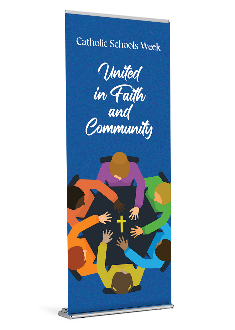 This Catholic Schools Week banner is approximately 84″ tall. It is printed on durable, polypropylene media with archival inks.