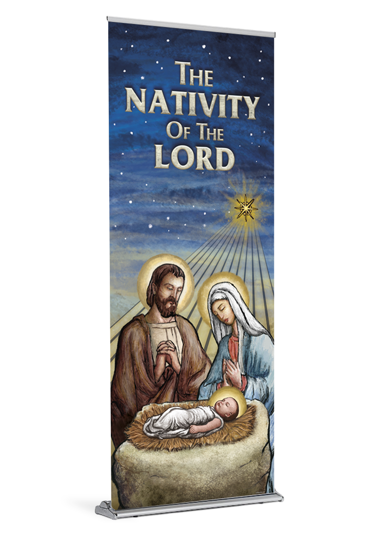 The choirs of angels sing and the wonder of the Christ Child is now in our midst. This beautiful banner will be appreciated by your parish family.