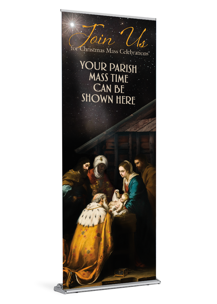 Gather your parishioners for the Christmas celebrations! Use this banner design as a base to display your Holiday Mass Times.