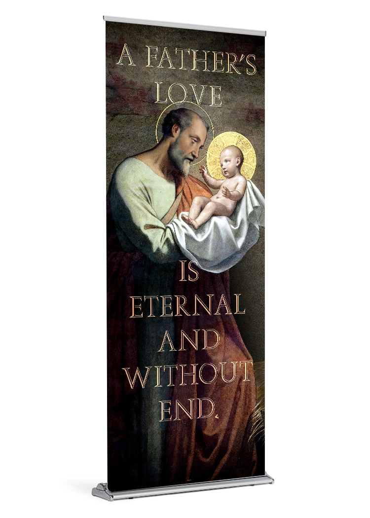 Honor the fathers of your parish with this prayerful banner depicting St. Joseph holding the infant Jesus. What better way to encourage fathers than to ask a blessing upon them?
