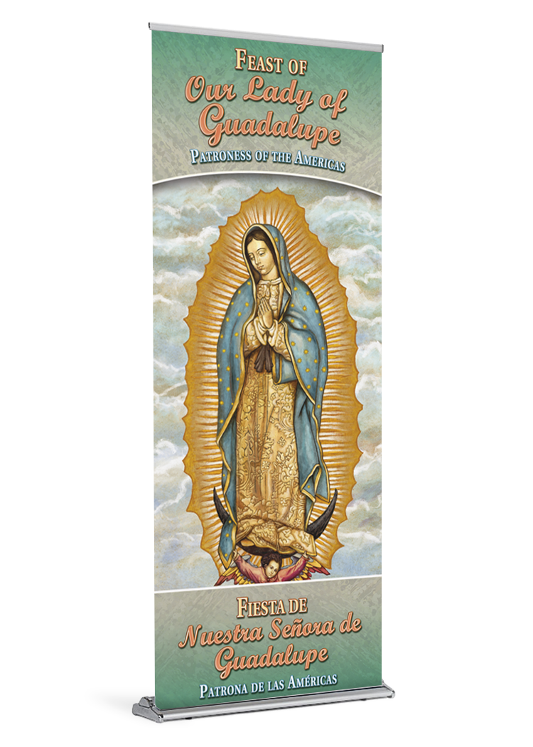 If you ordered a banner with your stand the banner will come installed and ready be displayed. All you need to do is insert the pole and pull the banner up. If your parish already owns a stand, your banner will arrive with a bottom rail that is quick and easy to slide into your stand.