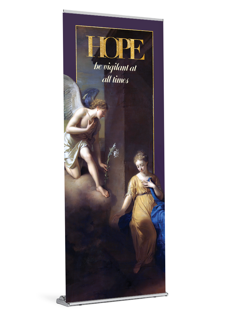 If you ordered a banner with your stand the banner will come installed and ready be displayed. All you need to do is insert the pole and pull the banner up. If your parish already owns a stand, your banner will arrive with a bottom rail that is quick and easy to slide into your stand.