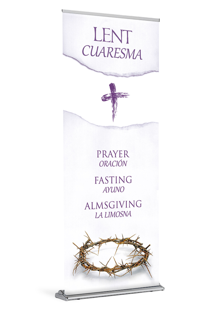 With its simple design, this Lent banner is the perfect accompaniment for your parish’s forty day journey into the desert with Christ.