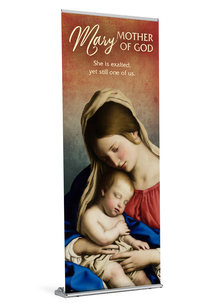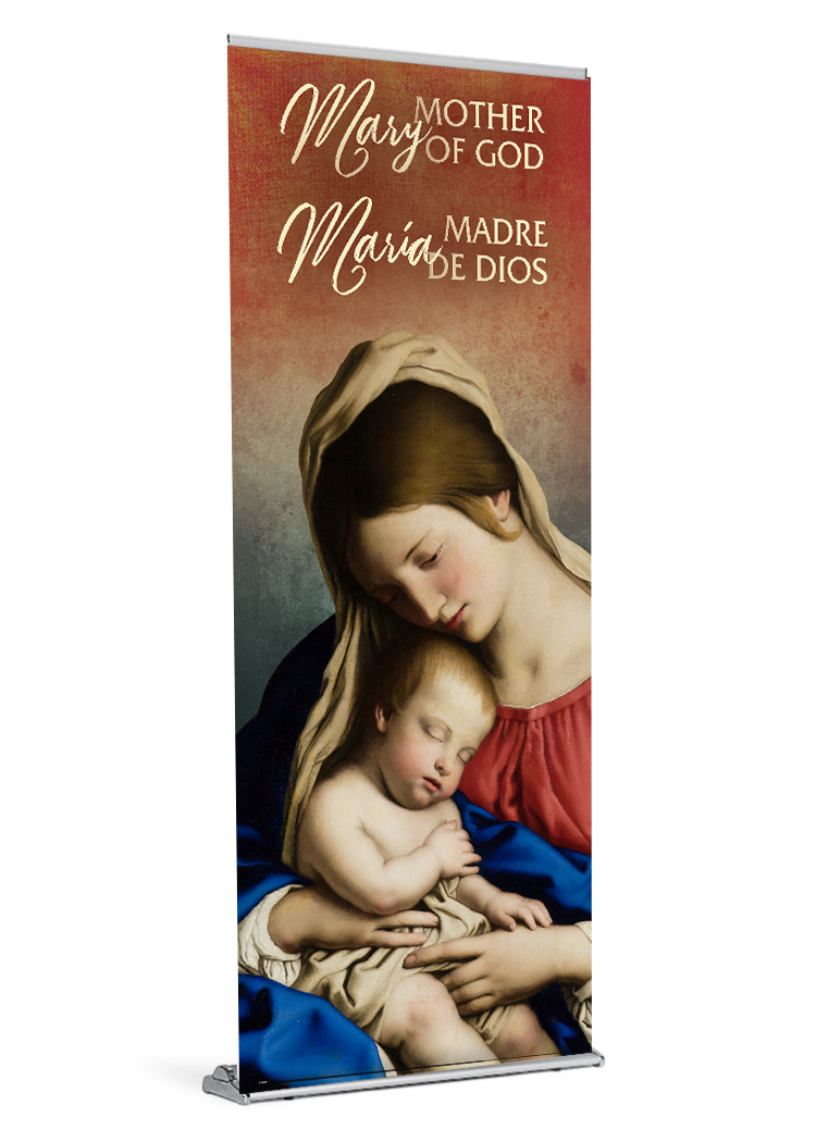 If you ordered a banner with your stand the banner will come installed and ready be displayed. All you need to do is insert the pole and pull the banner up. If your parish already owns a stand, your banner will arrive with a bottom rail that is quick and easy to slide into your stand.