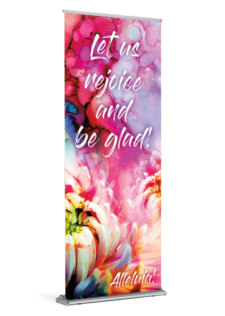 If you ordered a banner with your stand the banner will come installed and ready be displayed. All you need to do is insert the pole and pull the banner up. If your parish already owns a stand, your banner will arrive with a bottom rail that is quick and easy to slide into your stand.