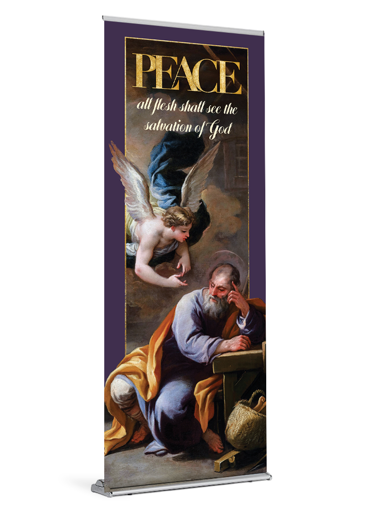 If you ordered a banner with your stand the banner will come installed and ready be displayed. All you need to do is insert the pole and pull the banner up. If your parish already owns a stand, your banner will arrive with a bottom rail that is quick and easy to slide into your stand.