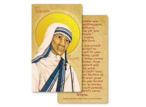 These premium cards are professionally printed on quality, heavy card stock. They are conveniently sized at 2″ x 3.5.” This makes them the perfect size for your pocket, purse, or wallet. The glossy, UV finish makes our prayer cards more durable and will last longer under normal usage.
