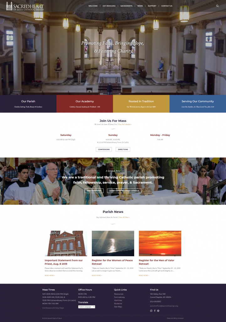 A good website, used to its full potential, can be an effective way of sharing Christ’s love with both parishioners and visitors. Parishioners find a resource they can rely on for valuable information and inspiration, while visitors are welcomed and drawn to learn more about Christ’s presence in your parish.